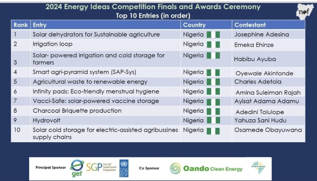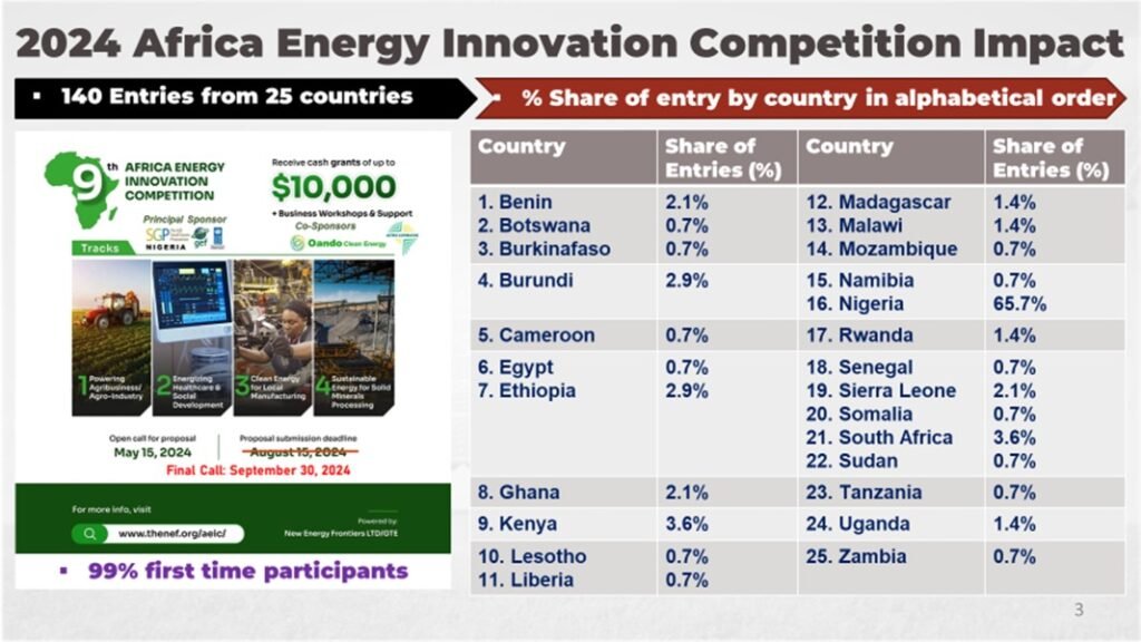 The 9th Africa Energy Innovation Challenge organized by NEF challenges youth-led early-stage energy entrepreneurs across Africa to collaborate with local research institutions or industries to develop a prototype model of a key device/equipment for a social energy enterprise, agri-business, fintech solutions or energy management system using local resources.